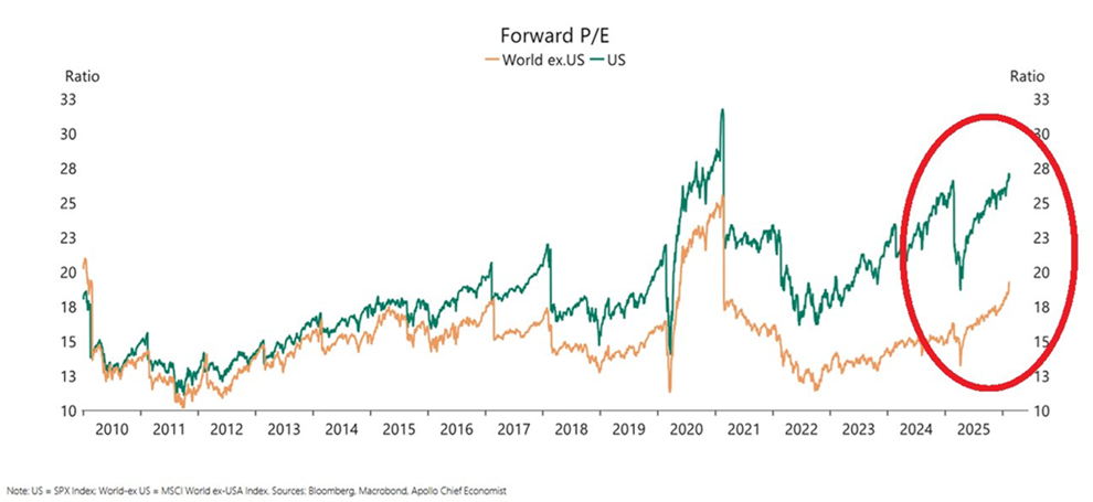 Además, según Apollo, el mercado bursátil estadounidense es extremadamente caro.