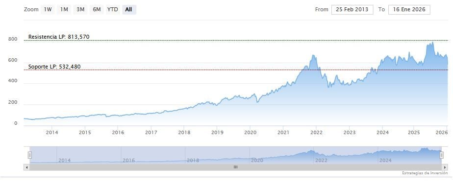 El soporte a largo plazo se encuentra en los 532.48 dólares. Mientras, los indicadores de Ei se muestran en su mayoría bajistas.
