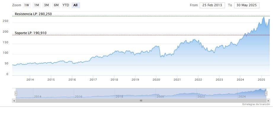 La resistencia a mediano plazo se encuentra en los 269.50 dólares. Mientras, los indicadores de Ei se muestran mixtos.