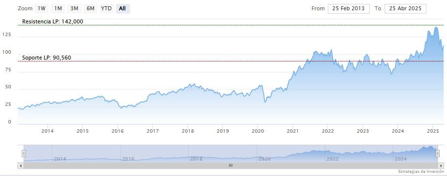 La resistencia a mediano y largo plazo se encuentra en los 142 dólares. Mientras, los indicadores de Ei se muestran mixtos.