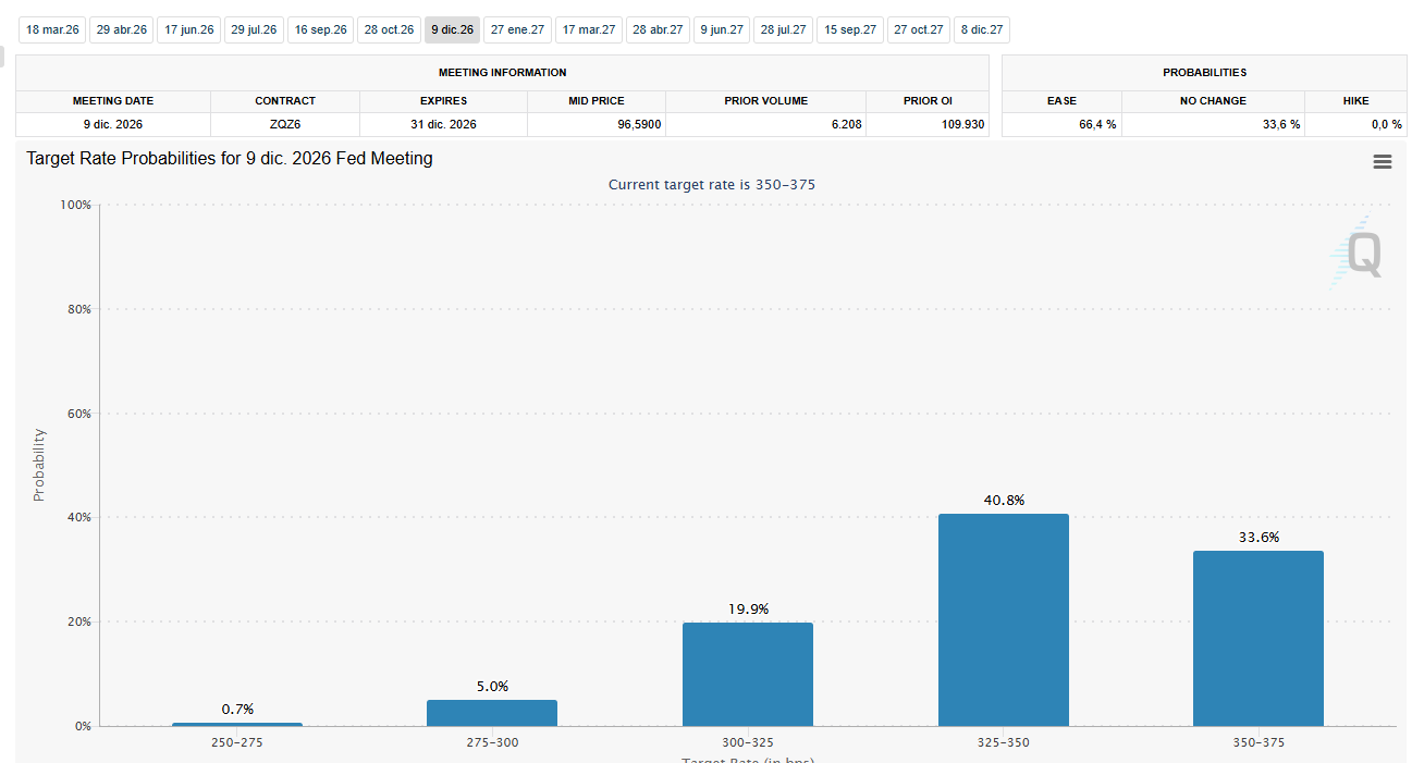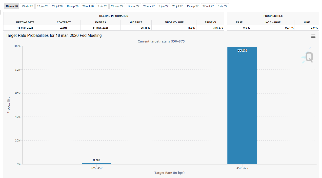 Sobre el papel, la reunión del Comité Federal de Mercado Abierto (FOMC) de esta semana no debería traer sorpresas inmediatas. El consenso apunta (en un 99%) a que la Fed mantendrá el tipo de los fondos federales en el rango del 3,50%-3,75%, nivel en el que se encuentran tras el recorte de diciembre. Sin embargo, el mensaje que acompañe a la decisión será determinante para los mercados.