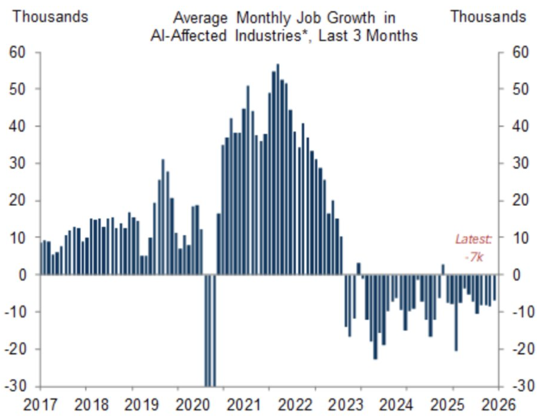 La pérdida de puestos de trabajo en los sectores afectados por la IA está siendo visible, pero aún es moderada, afirma Goldman Sachs.