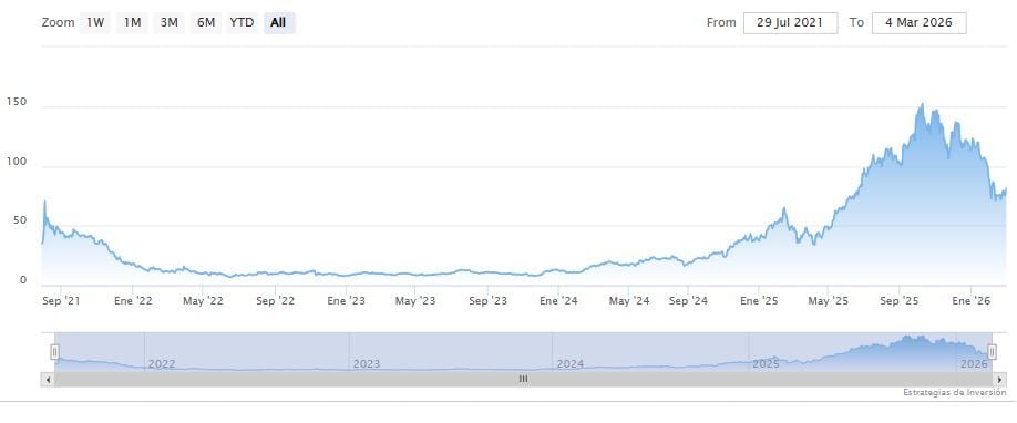 Robinhood Mkts Rg-A cerraba el jueves a la baja en los 80.55 dólares. La media móvil de 200 periodos se encuentra debajo de las velas de los últimos veinticinco días, RSI a la baja en los 45 puntos y las líneas del MACD debajo del nivel de cero.