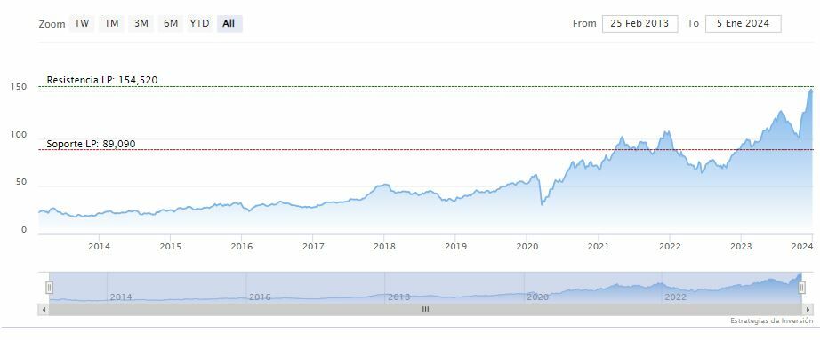 La resistencia a mediano y largo plazo se encuentra en los 154.52 dólares. Mientras, los indicadores de Ei se muestran mixtos.
