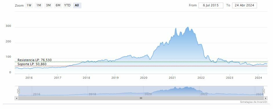 La resistencia a mediano plazo se encuentra en los 68.21 dólares. Mientras, los indicadores de Ei se muestran mixtos.