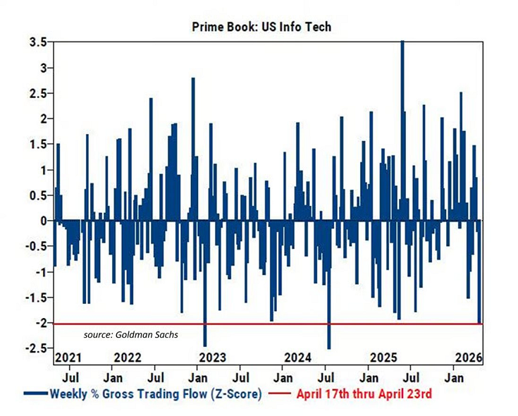 Los fondos de cobertura se deshacen de las acciones tecnológicas estadounidenses a un ritmo vertiginoso. El sector tecnológico registró la mayor reducción semanal de la exposición de los Hedge Funds desde julio de 2024, y la tercera mayor de los últimos cinco años.