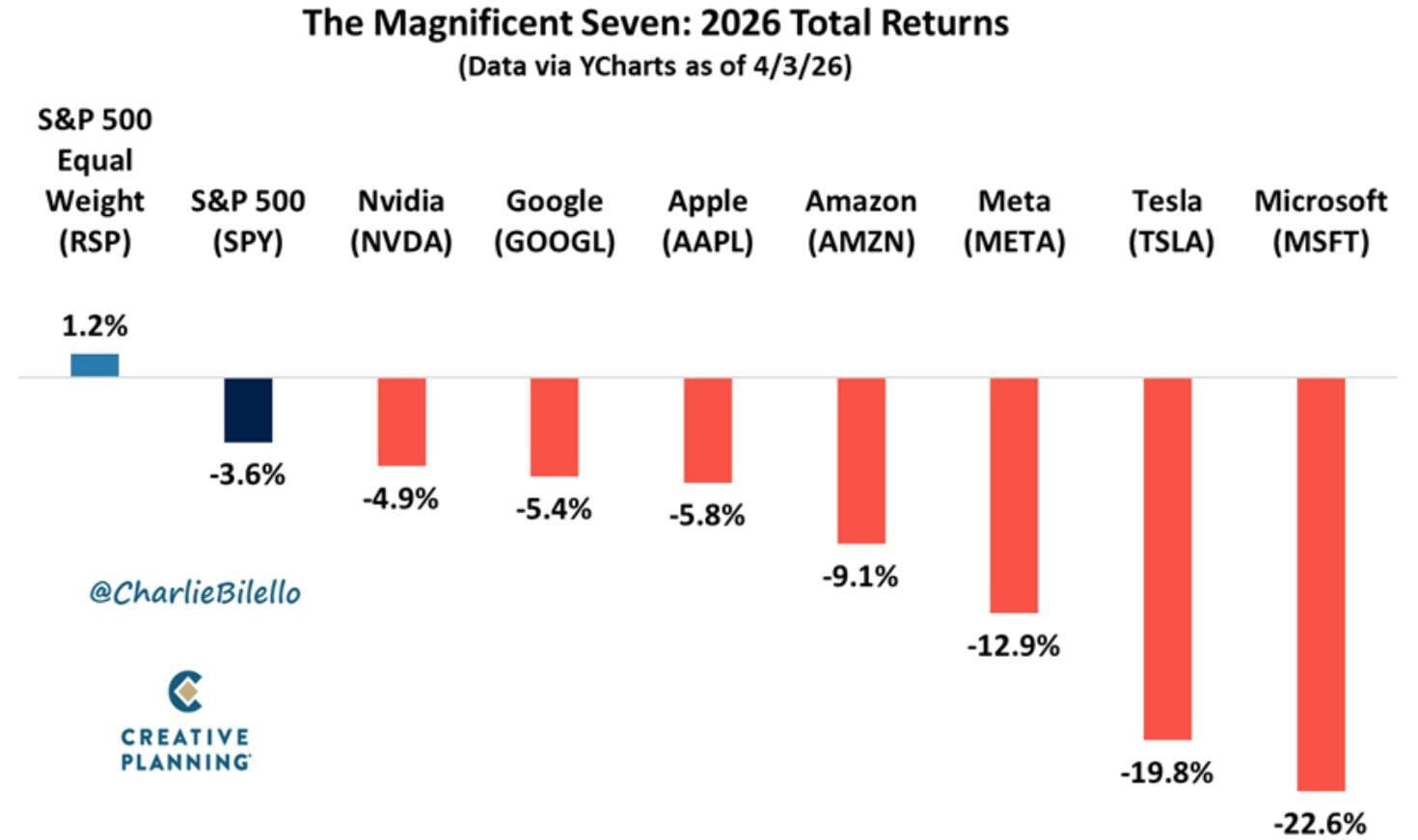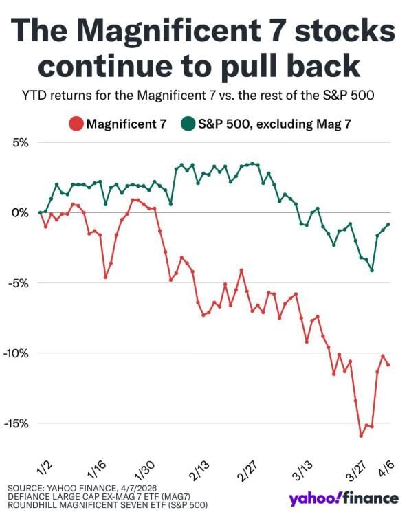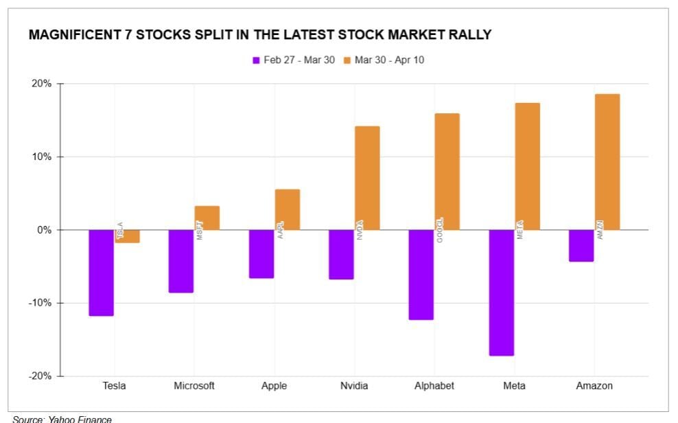 Con igual peso, los 7 magníficos ceden de media un 13% desde el comienzo del ejercicio frente al 5,38% de caída del S&P 500 hasta principios de abril.