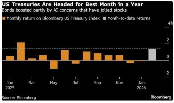 El 2026 ha empezado convulso en lo que se refiere al entorno macroeconómico y geopolítico, sacudiendo al mercado en varias ocasiones. No obstante, los bonos de EE.UU. a 10 años han completado su mejor rendimiento mensual en un año según Michael MacKenzie, Ye Xie y Mia Glass en Yahoo Finance.