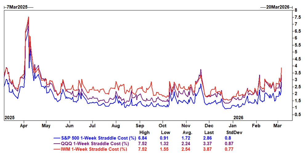 Al cierre del viernes, el mercado de opciones apuntaba a una variación del 2,86% para el S&P 500 esta semana.