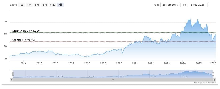La resistencia a mediano plazo se encuentra en los 41.42 dólares. Mientras, los indicadores de Ei se muestran mixtos.