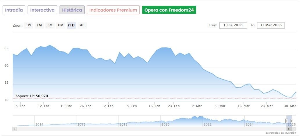 En lo que va de 2026, el gigante del calzado deportivo se dejaba hasta el cierre de ayer algo más de un 17%, con una caída acumulada de un 34% desde los máximos de agosto del año pasado (80,165 dólares).
