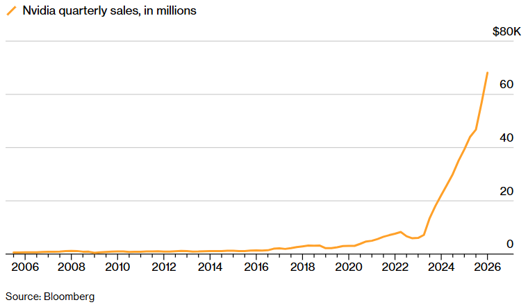 Solo en el cuarto trimestre, NVIDIA obtuvo un beneficio neto de 42.960 millones de dólares, aumentando en un 94,5% sus ganancias del mismo periodo del ejercicio precedente, mientras que su facturación trimestral creció un 73,2%, hasta un récord de 68.127 millones de dólares.
