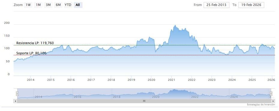 El soporte a mediano plazo se encuentra en los 101.03 dólares. Mientras, los indicadores de Ei se muestran mixtos.