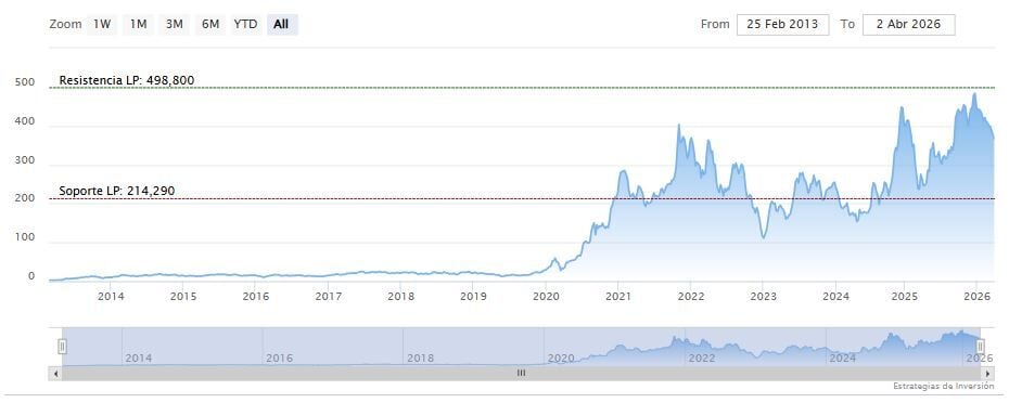El precio objetivo de Brinkman es algo atípico en Wall Street: el precio objetivo promedio de los analistas para la acción es de 360 dólares según datos de Yahoo Finance.