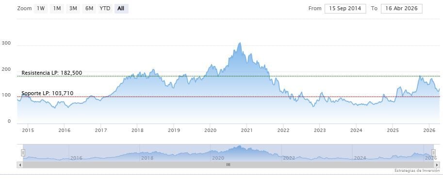 La resistencia a mediano plazo se encuentra en los 181.10 dólares. Mientras, los indicadores de Ei se muestran mixtos.