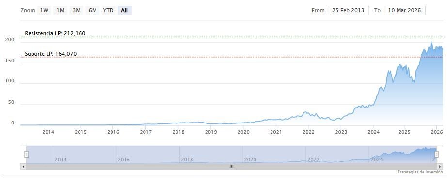 La resistencia a mediano plazo se encuentra en los 197.62 dólares. Mientras, los indicadores de Ei se muestran mixtos.