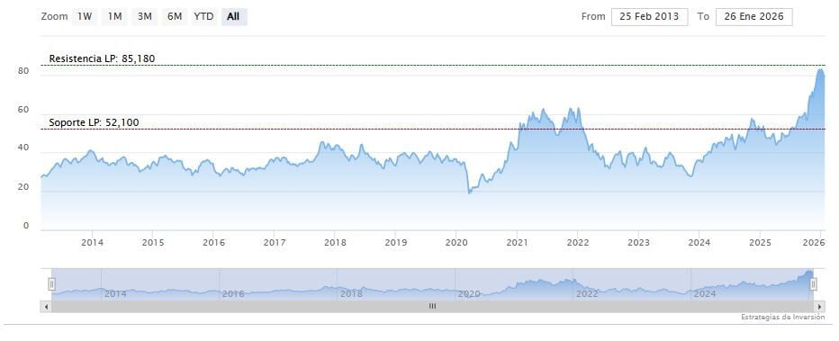 La resistencia a mediano plazo se encuentra en los 85.18 dólares. Mientras, los indicadores de Ei se muestran mixtos.