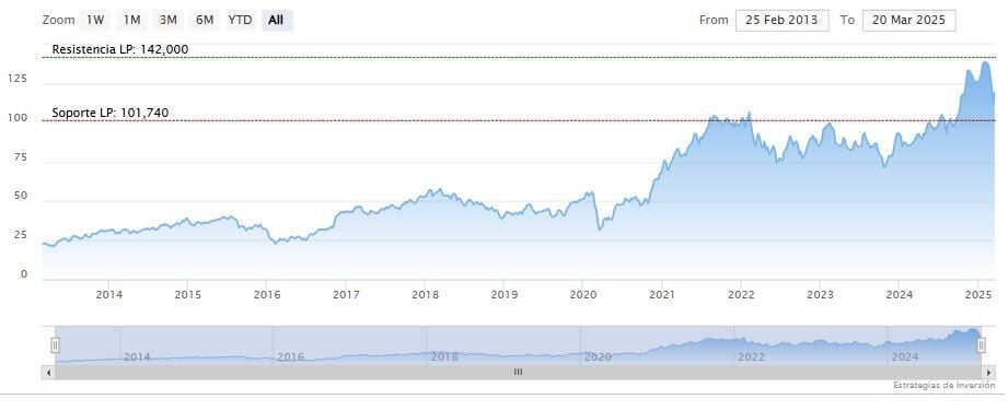 La resistencia a mediano y largo plazo se encuentra en los 142 dólares. Mientras, los indicadores de Ei se muestran mixtos.
