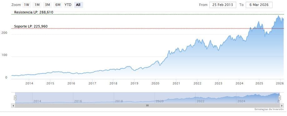 El soporte a mediano plazo se encuentra en los 243.43 dólares. Mientras, los indicadores de Ei se muestran mixtos.