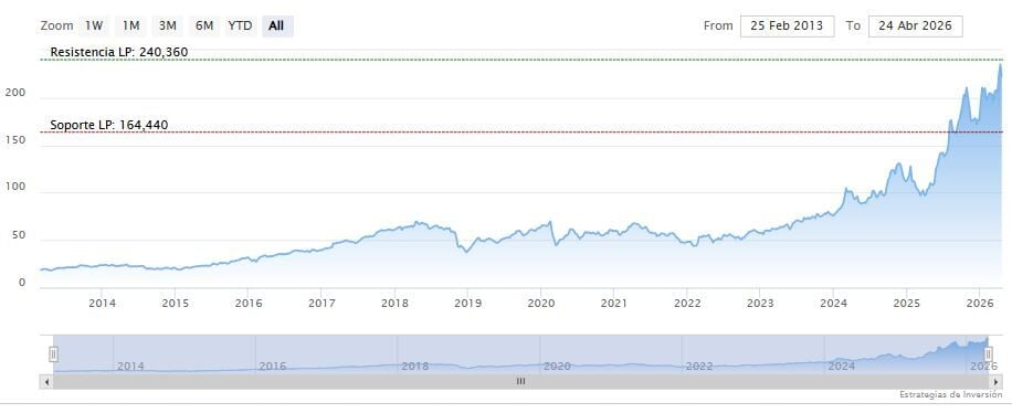 BWX Technologies también cerraba a la baja en los 223.11 dólares. La media móvil de 70 periodos se mantiene debajo de las últimas velas, RSI a la baja en los 51 puntos y las líneas del MACD encima del nivel de cero.