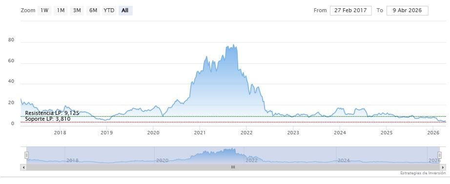 El soporte a mediano y largo plazo se encuentra en los 3.81 dólares. Mientras, los indicadores de Ei se muestran mixtos.