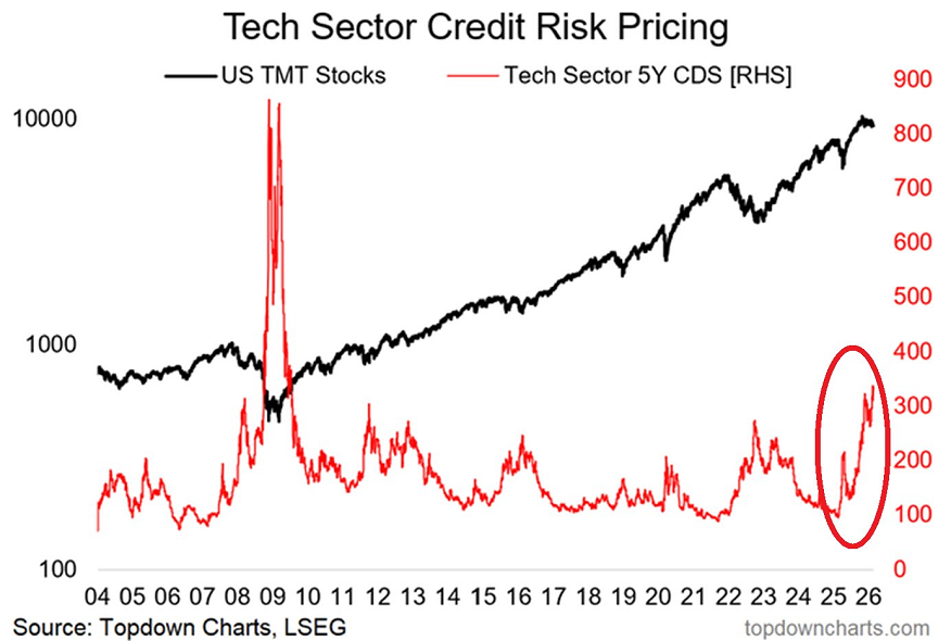 Y es que el riesgo crediticio del sector tecnológico estadounidense está aumentando a un ritmo alarmante.