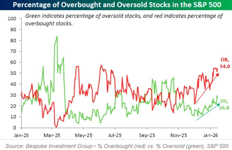 Al mismo tiempo, el 26,8% de los valores están sobrevendidos, el porcentaje más alto desde octubre.
