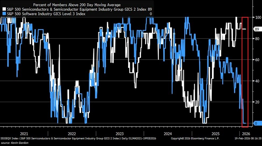A fecha del viernes, todas las acciones de software del S&P 500 cotizan por debajo de su promedio móvil de 200 días por primera vez desde el mínimo de abril de 2025