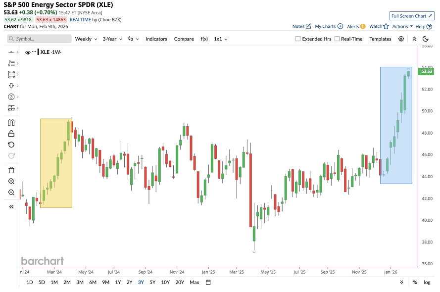 Y por si fuera poco, las acciones energéticas del S&P 500 encadenan su octava semana consecutiva al alza, lo que igualaría la racha alcista más larga en casi dos años. ¿Signos de debilidad?