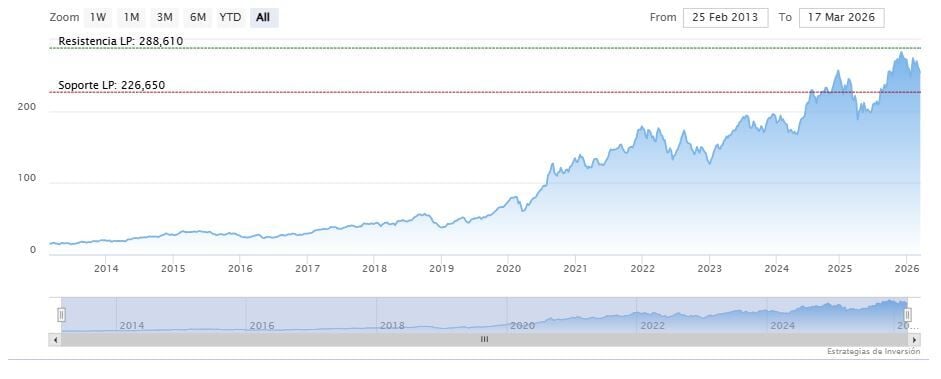 El soporte a mediano plazo se encuentra en los 243.43 dólares. Mientras, los indicadores de Ei se muestran mixtos.