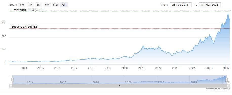 La resistencia a mediano y largo plazo se encuentra en los 390.10 dólares. Mientras, los indicadores de Ei se muestran mixtos.