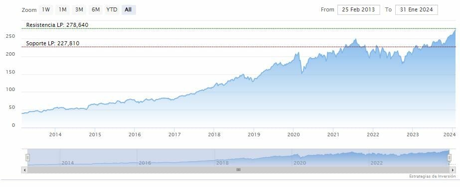 La resistencia a mediano plazo se encuentra en los 278,64 dólares. Mientras, los indicadores de Ei se muestran en su mayoría alcistas.