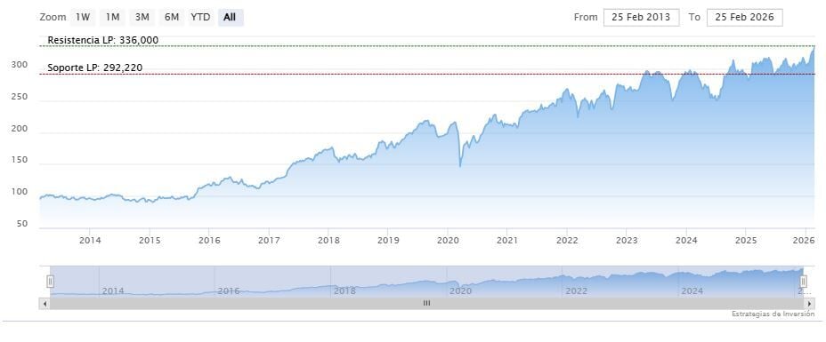 La resistencia a mediano y largo plazo se encuentra en los 336 dólares. Mientras, los indicadores de Ei se muestran en su mayoría alcistas.