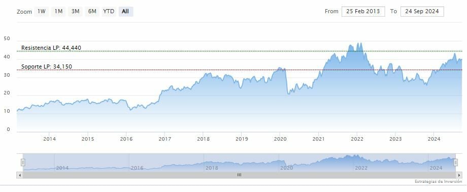 El soporte a mediano plazo se encuentra en los 35.15 dólares. Mientras, los indicadores de Ei se muestran mixtos.