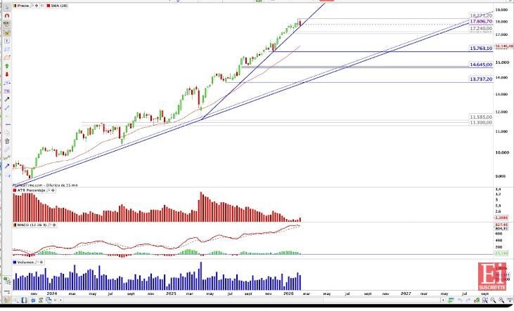 Desde un prisma técnico, la caída "parte de una zona de máximos cercanos a los 18.270 puntos, donde durante esta semana se marcó un máximo de 18.267. Es evidente que esos máximos históricos del año pasado siguen funcionando como una barrera de resistencia a corto plazo", dice José Antonio González, analista técnico de Estrategias de inversión y, un cierre semanal bajo los 17.806 puntos “incrementaría las probabilidades de que, en las próximas semanas, podamos ver una corrección hacia la directriz creciente secundaria de medio plazo”.
