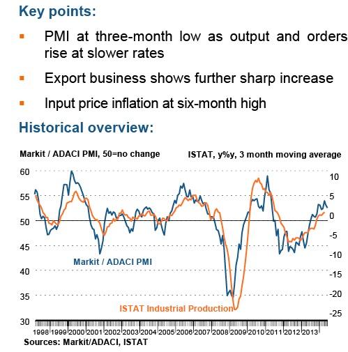 PMI de manufacturas sube de 57 a 57,5 cuando se esperaba 56,8 es el mejor desde noviembre. Empleo sube de 54,4 a 55,8 mejor desde marzo 2011