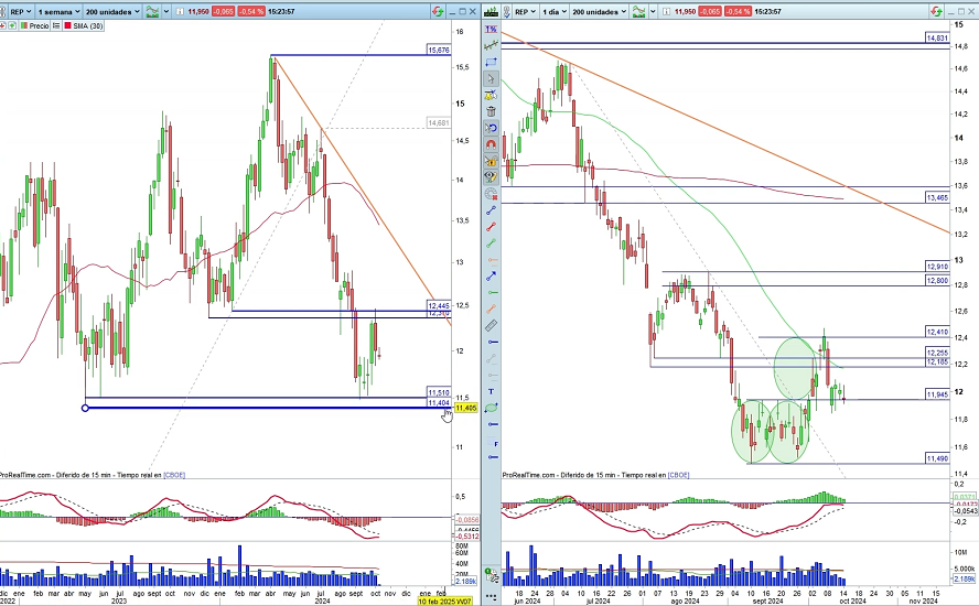 Por la parte alta, "se requiere un cierre semanal por encima de los máximos de 12,475 euros para empezar a planterar que el intento de rebote de Repsol a corto plazo va dando pasos hacia delante".