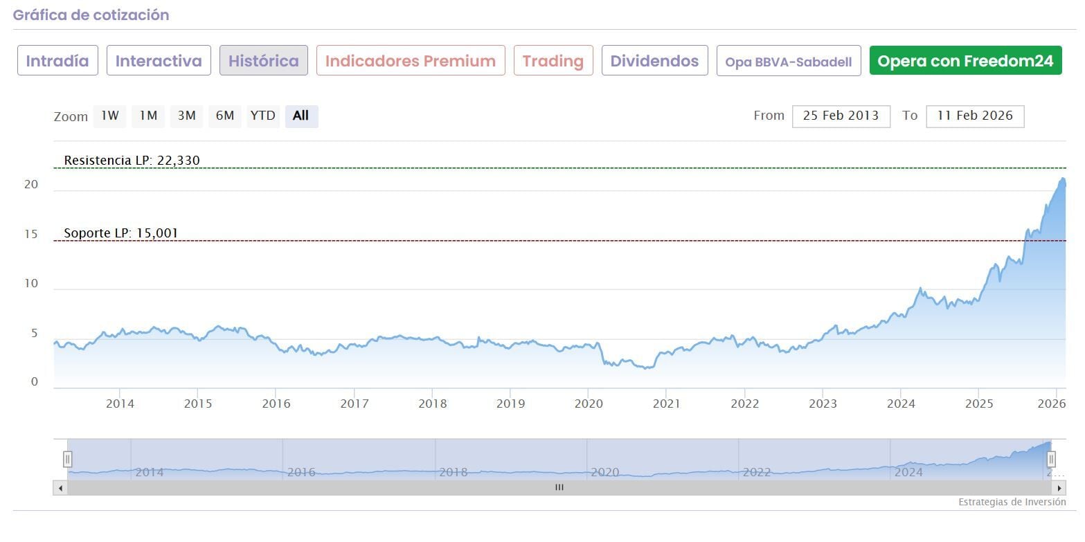Y es que las dudas le han posicionado de ganar, de forma interanual un 101% desde los aranceles de abril pasado, a perder más de un 9% desde sus máximos alcanzados este mismo mes, el pasado 3 de febrero, en los 22,33 euros por acción.
