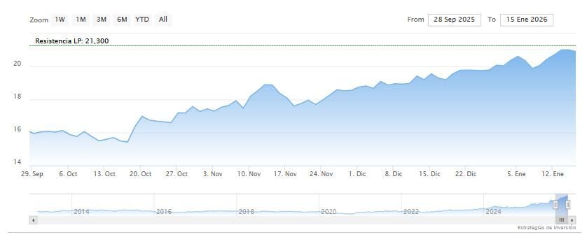 Una buena marcha del banco que se concretaba esta semana con las declaraciones del presidente de retribuir al accionista con 36.000 millones de euros, bien en forma de dividendo en metálico, bien mediante la recompra de acciones hasta 2028. También desde los analistas hay halagos para el BBVA. Goldman Sachs, incluía el valor en su “Conviction list” del mes de enero de valores europeos. La analista Sofie Peterzens prevé que BBVA duplique el crecimiento de ingresos del sector en 2026, dada su exposición a mercados de alto crecimiento como México, Sudamérica, Turquía y el sur de Europa. “Este crecimiento de ingresos debería combinarse con la digitalización y la eficiencia operativa para generar mayores rentabilidades y flexibilidad de capital. A pesar de estas mayores rentabilidades, BBVA cotiza en línea con el sector”, concluye en los argumentos para incluir al banco en esta lista de valores preferidos.