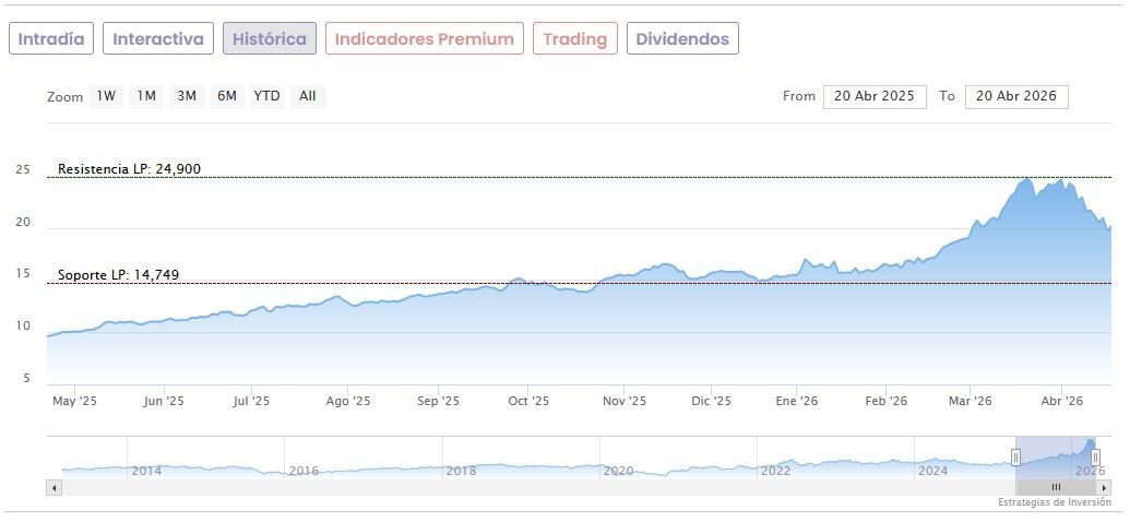 Las acciones de Repsol acumulan una subida del 27,7% en lo que va de 2026, prácticamente doblando su cotización (+98,25%) en los últimos 12 meses. No obstante, han caído un 18,3% desde que el 19 de marzo tocaron unos máximos de 24,90 euros.