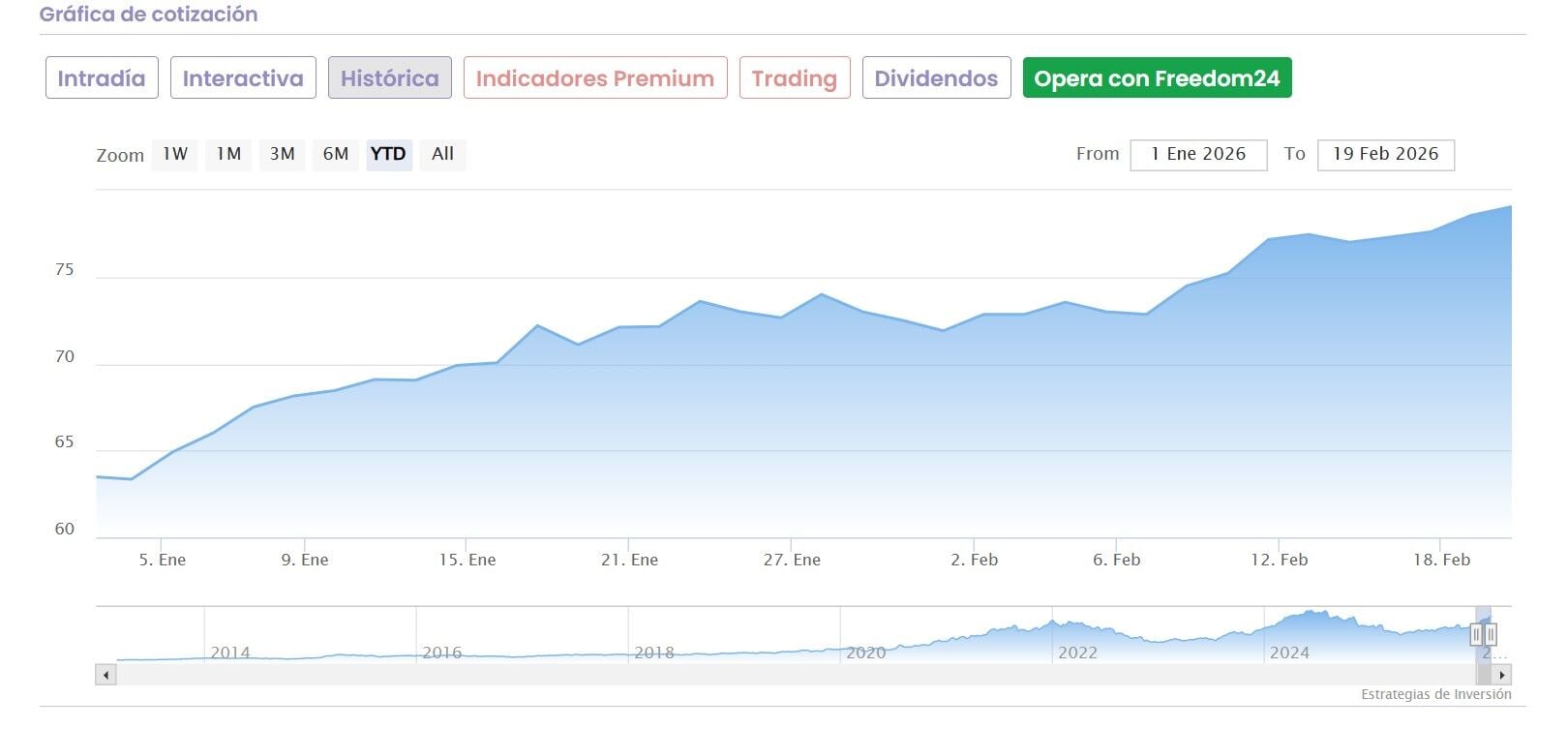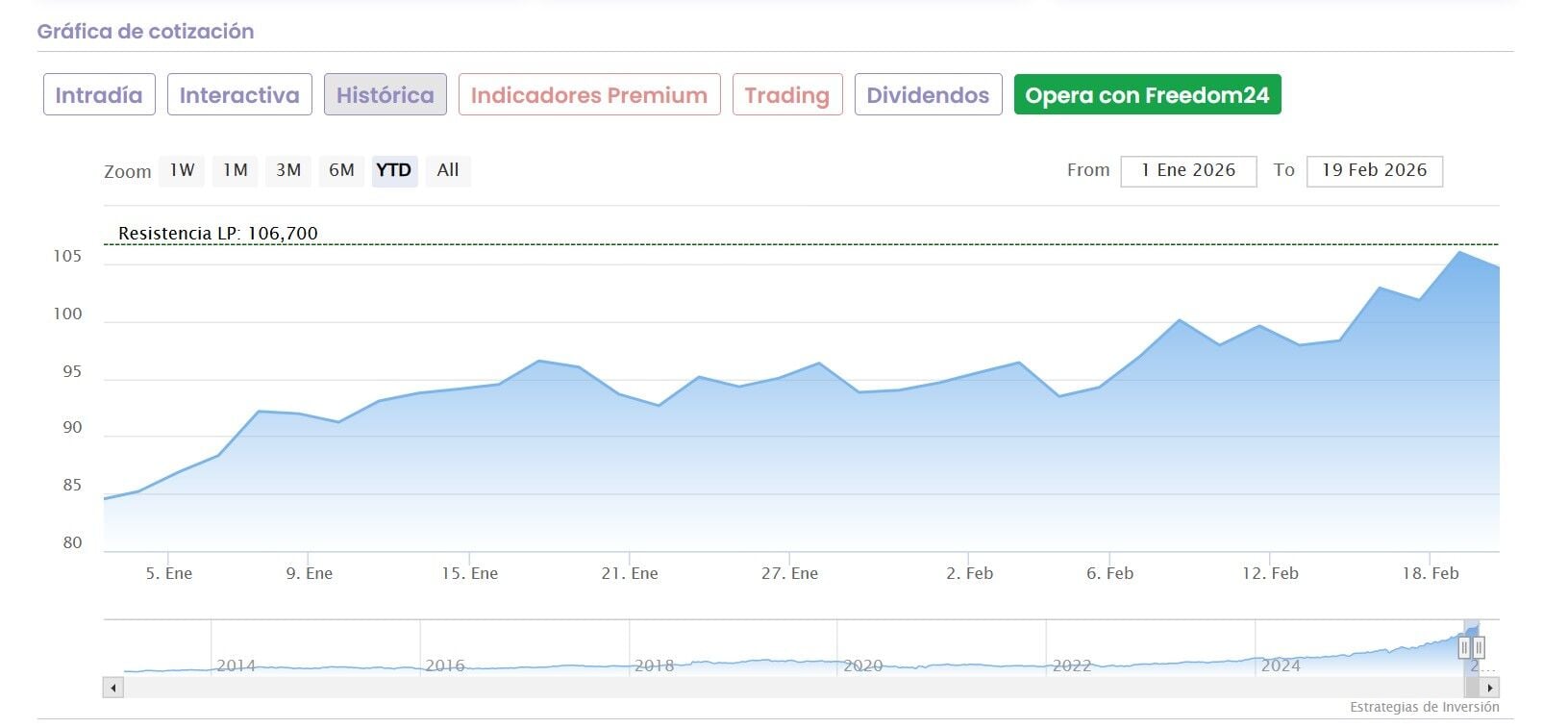 En lo que va de año gana más de un 24%, que se traduce en un 38% en tres meses y un 112% en el último año.