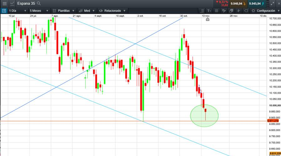 José Luis Herrera, analista de CMC Markets, considera que "por el momento se ha detenido hoy en los mínimos del pasado día 5 de octubre, tendrá que confirmar al cierre si es un simple rebote o una vuelta duradera; en caso de perforación, podría ir a visitar la base del gran canal descendente desde los altos del año, que en estos momentos pasa por niveles de 9.650 puntos".