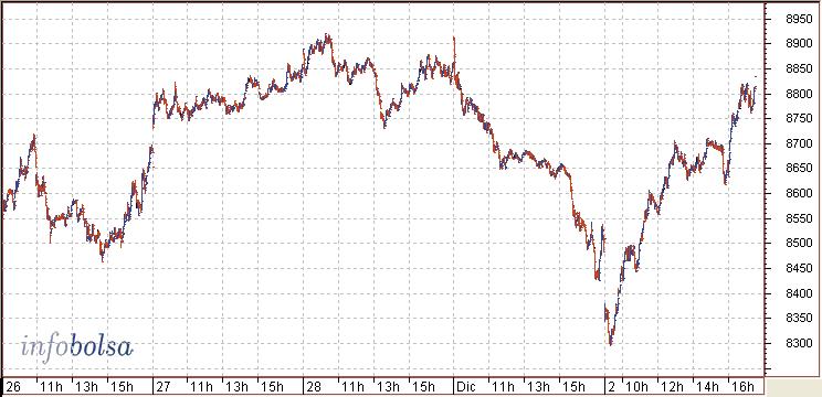 El rebote de Wall Street fue acicate suficiente para que el Ibex recuperase parte del terreno perdido en la jornada precedente a pesar de conocerse durante la sesión que el número de desempleados se incrementó un 6,08% en noviembre. En total, fueron 171.243 personas las que se inscribieron en la lista del INEM, especialmente en el sector servicios. Al cierre,