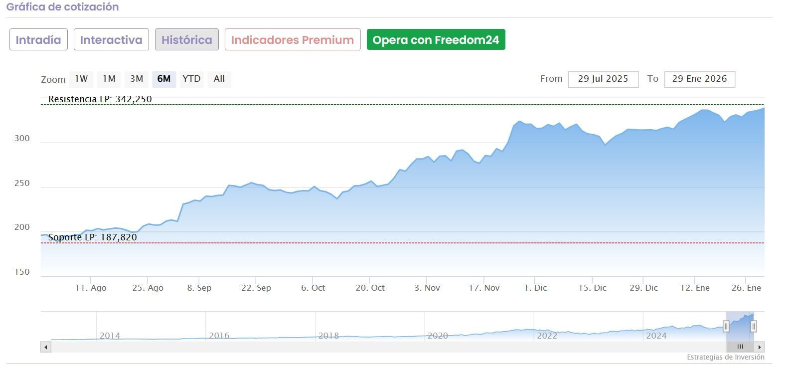 Un valor que sube un 8% en lo que va de año, batiendo claramente al Nasdaq, que avanza por debajo del 2%, al igual que ocurre con el S&P 500, con un avance en el primer mes del año similar. Lo mejor, su progresión en el último trimestre, en el que avanza por encima del 20% y el 66% que recupera en el último año.