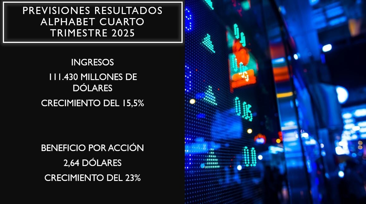 Este miércoles presentará resultados y los expertos prevén un sólido cuarto trimestre, impulsado por el crecimiento de la nube y de la publicidad. Desde Seeking Alpha destacan que "los puntos clave a observar incluyen la cartera de pedidos y los márgenes de Google Cloud, el progreso de la monetización de la IA y la orientación de CapEx/FCF( el flujo libre de caja) para 2026, todos ellos fundamentales para mantener el impulso.