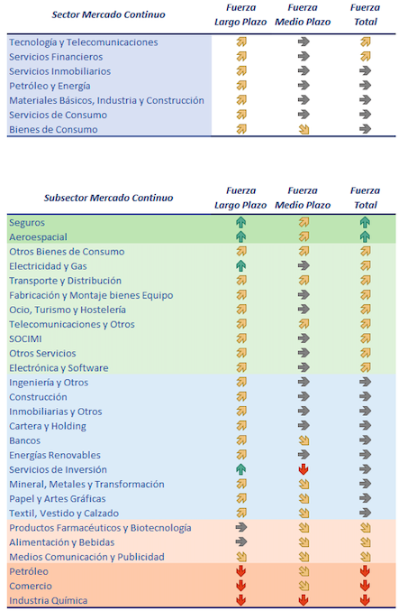 Por ello, a día de hoy, el análisis sectorial y técnico es clave para invertir en renta variable. En este sentido, teniendo en cuenta el Ranking de Fuerza Sectorial de febrero 2024, elaborado por el analista de Ei, José Antonio González, y que nos permite identificar los sectores que mejor rendimiento están registrando en estos momentos, agregando el comportamiento de las compañías, y el “estado de salud” del mercado, si miramos a la bolsa española la fuerza tendencial tanto de los sectores como subsectores es positiva para el 40,7%, frente a los sectores neutrales que son el 37% y al 22,2% restante en negativo.