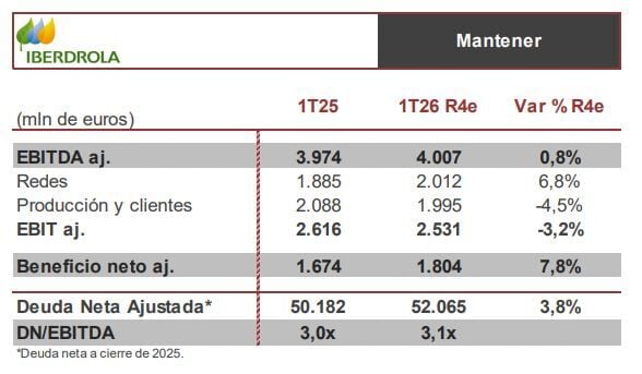 “En Redes, en España se recoge el impacto de la nueva TRF (6,58% vs 5,58% previo), en Reino Unido se consolidan el trimestre completo de ENW (vs 1 mes en 1T25), En EEUU la entrada de una nueva línea de transmisión y as mejores tarifas que más que compensan la evolución del dólar, mientras que en Brasil esperamos un recorte como consecuencia de que la extensión de sus concesiones lleva a no registrar ingresos por el valor neto realizable que sí se registró en el primer trimestre de 2025”.
