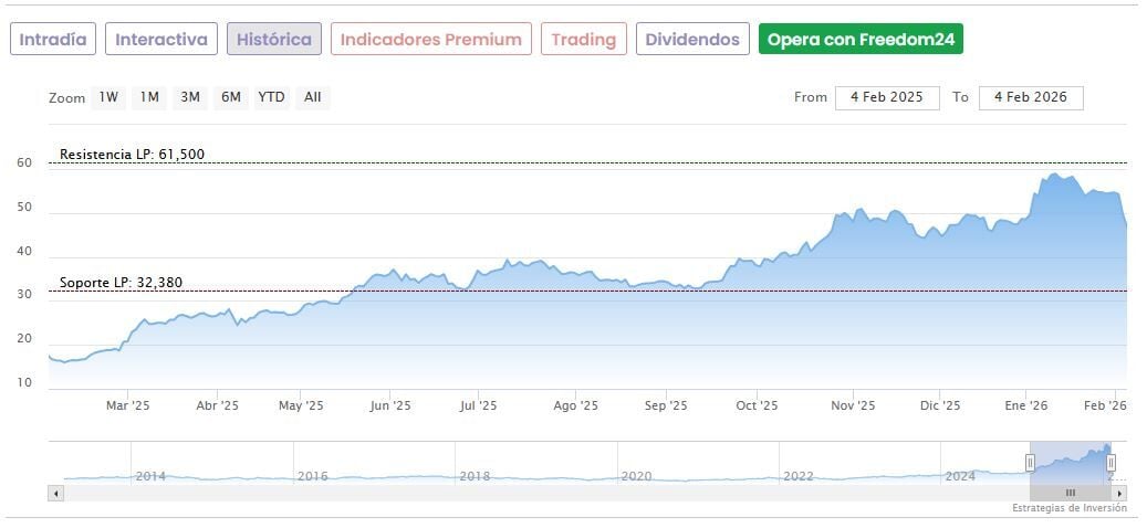 A pesar de esta dura corrección, Indra sube todavía un espectacular 185% en los últimos 12 meses, utilizando de referencia los 16,10 euros del 7 de febrero de 2025, su punto más bajo en las últimas 52 semanas.