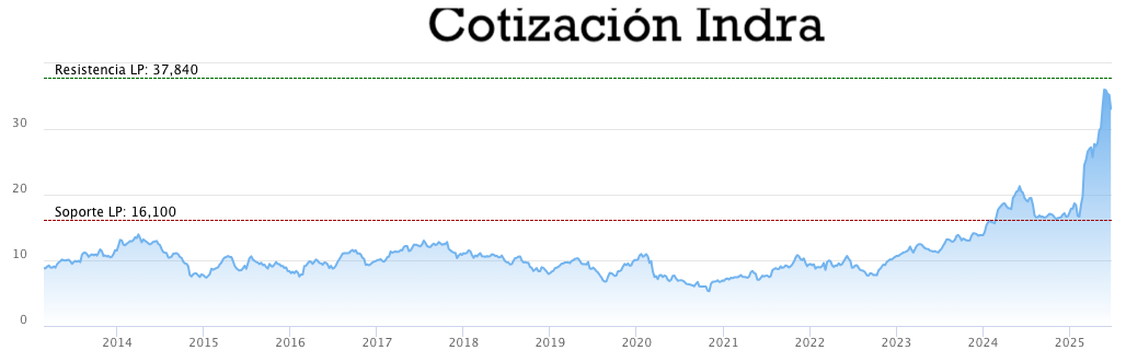Indra ha venido mostrando una tendencia ascendente desde mediados de 2024, impulsada por contratos estratégicos tanto en defensa como en soluciones digitales para gobiernos e infraestructuras críticas.