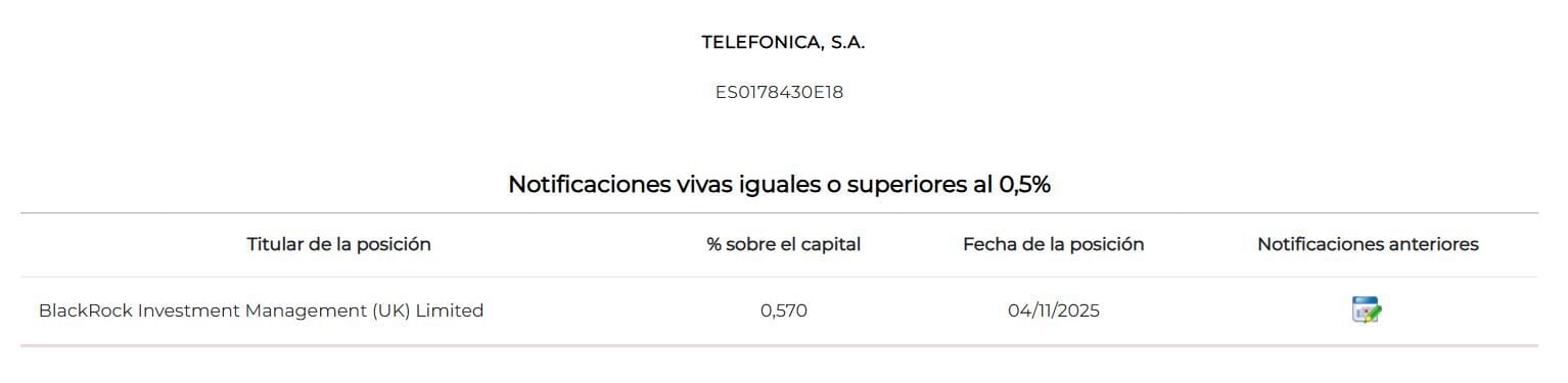 De ahí que cuantifiquemos la permanencia invariada de BlackRock Investment Management (UK) Limited del 0,57% desde el pasado mes de noviembre, cuyo valor de mercado actual alcanza los 109,08 millones de euros.